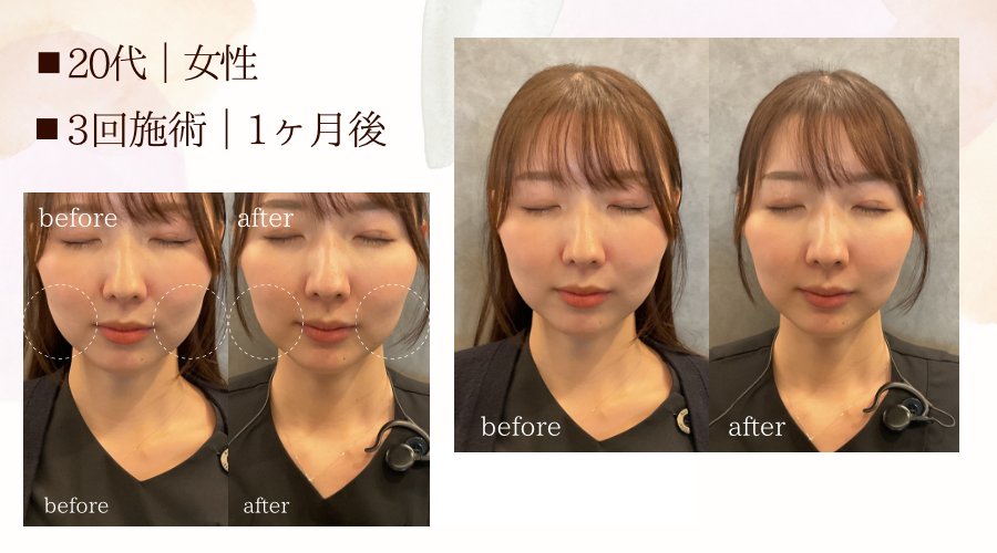施術後3日程から徐々に効き始め、経過2週間から約3〜4ヶ月の持続性がございます。